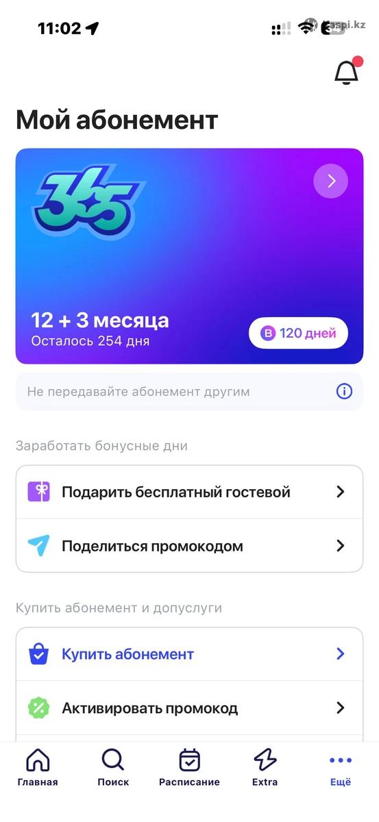1 фит обонемент 12+3 израсходовано 3 месяца