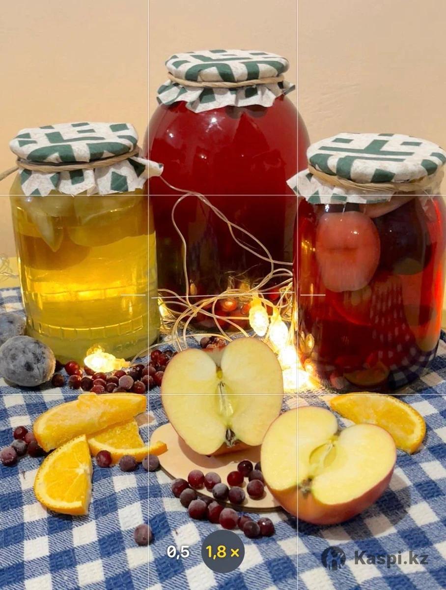 В наличии исключительно домашние компоты в ассортименте. В составе только фрукты-ягоды, сахар и очищенная вода. Цены: 1л - от 1000 тг 1,5л - от 1500 тг 2л - от 1900 тг (в зависимости от ингредиентов) При заказе от 5 банок скидка 10% Побалуйте себя напитком на любой вкус! (также работаем по пред заказу) Подробнее уточняйте по (Ирина) Адрес: Байконурский район, улица Кенесары 52.