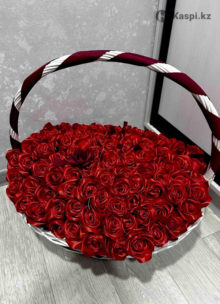 Продам корзину 101 розы из атласных лент. Ручная работа. Отличный подарок на 14 февраля или 8 марта.