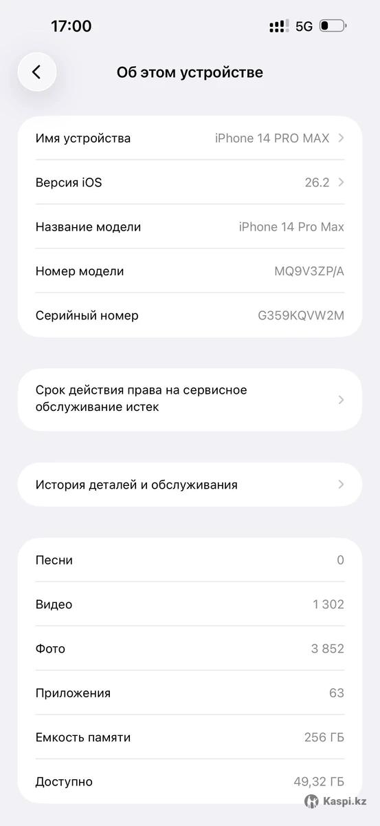 📱 iPhone 14 Pro Max, 256 GB белый Продаю iPhone 14 Pro Max • Память: 256 GB • Состояние: хорошее, без серьезных дефектов • Аккумулятор: 78% • Все функции работают исправно • Face ID, камеры, звук — все в порядке 📦 В комплекте: телефон, коробка, кабель, чехлы 🔓 iCloud чистый, готов к использованию Пользовалась сама, ничего не менялось аккуратно Цена: 310 000 тг