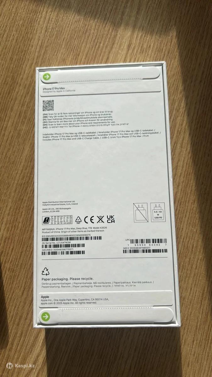Запечатанный, абсолютно новый 17 Pro Max Deep Blue 1TB, куплен в Великобритании, есть инвойс. Небольшой торг уместен.