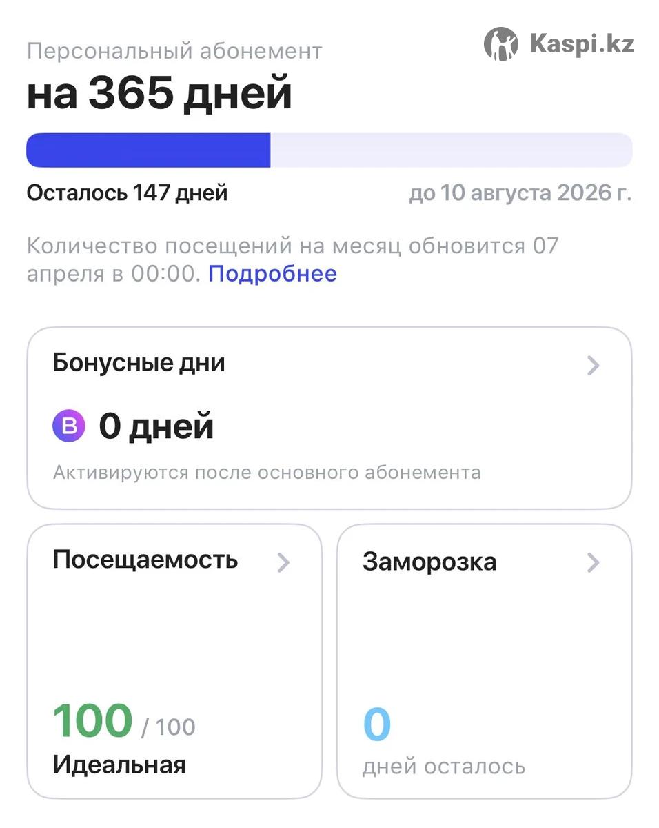 Абонемент 1 fit, на 147 дней, заморозок и бонусных дней не осталось