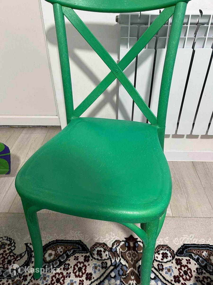 Продам 2 стула за 12.000 тенге, в хорошем состоянии, крепкие и тяжелые, цвет: зеленый и коричневый.
