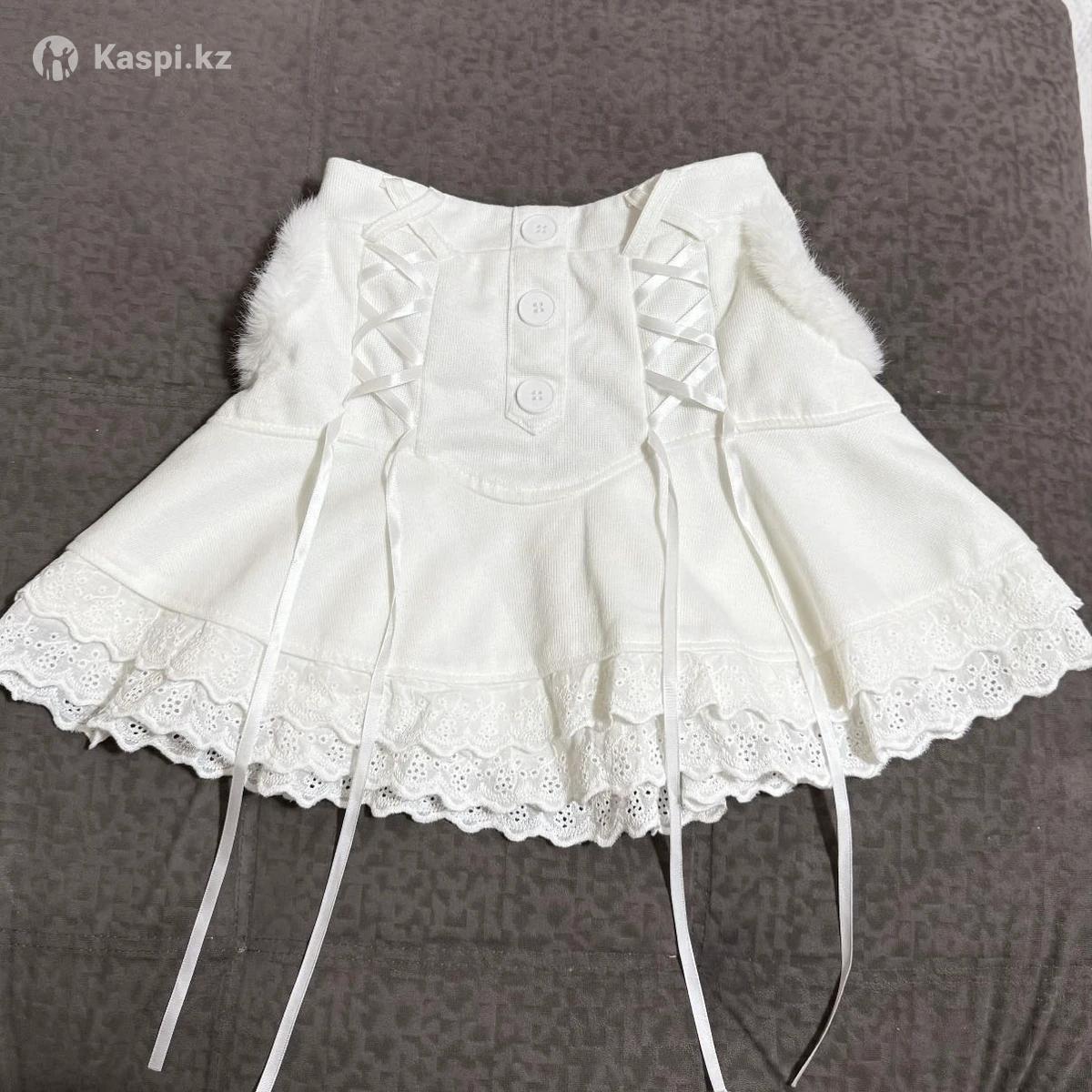 1. белая, кружевная, теплая юбка с завязками в корейском/японском стиле лолита, кокетт. есть шортики и карманы! размер стандарт талия 62см+ (на резинке, тянется) длина 36 см. 2. черная мини-юбка с шортиками. талия на резинке - хорошо тянется подойдет на XS-S длина 32 см. 5000 за одну юбку! если возьмете две, будет скидка