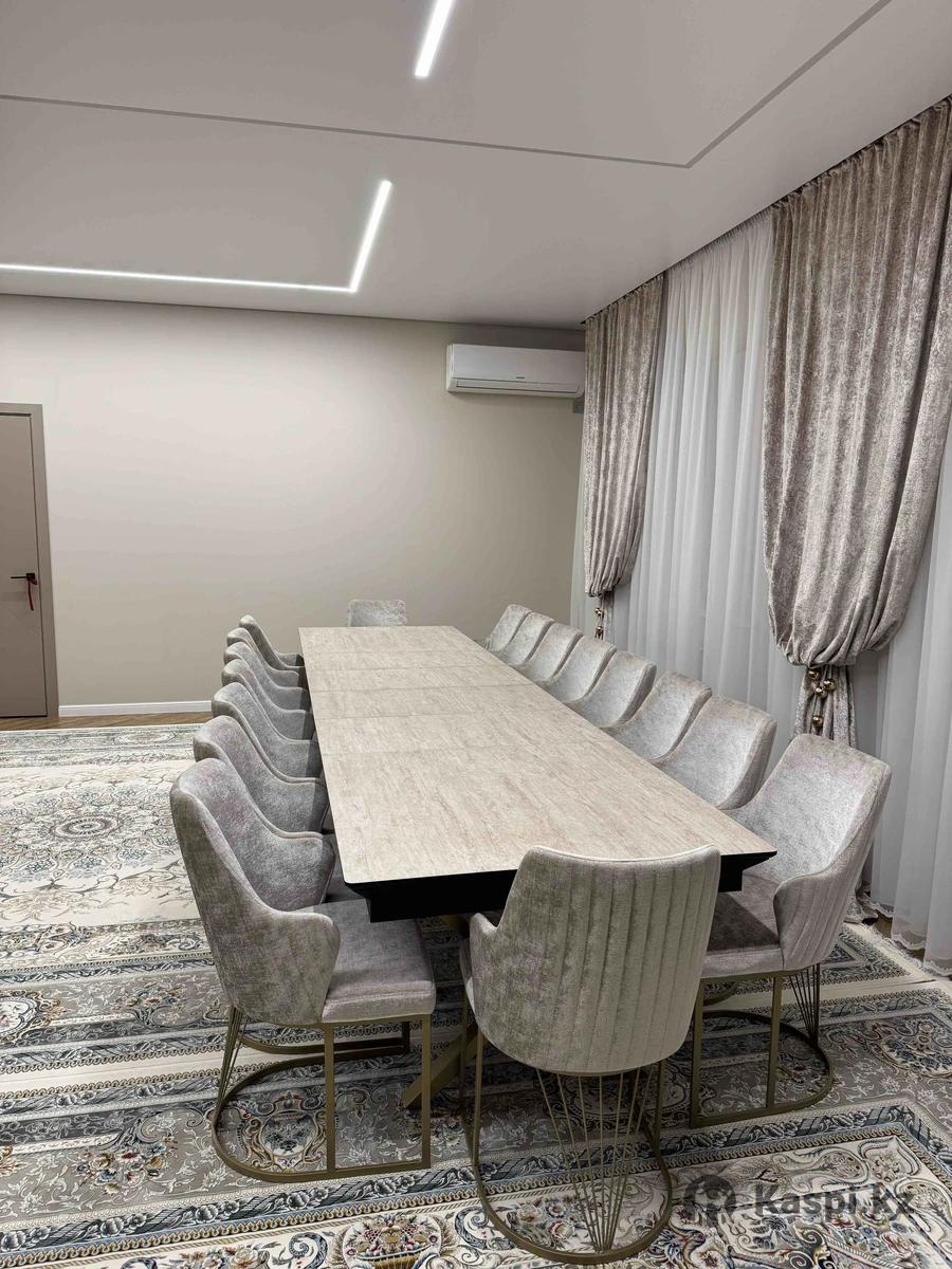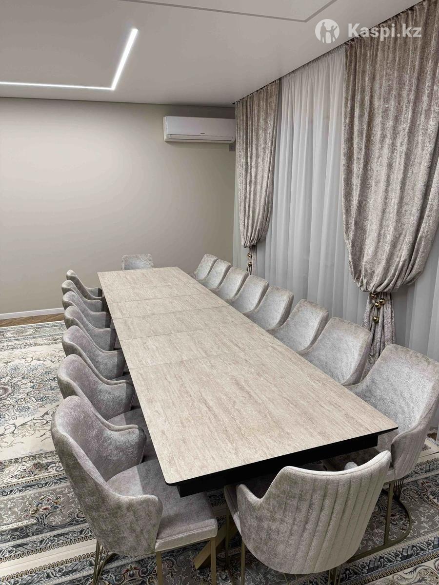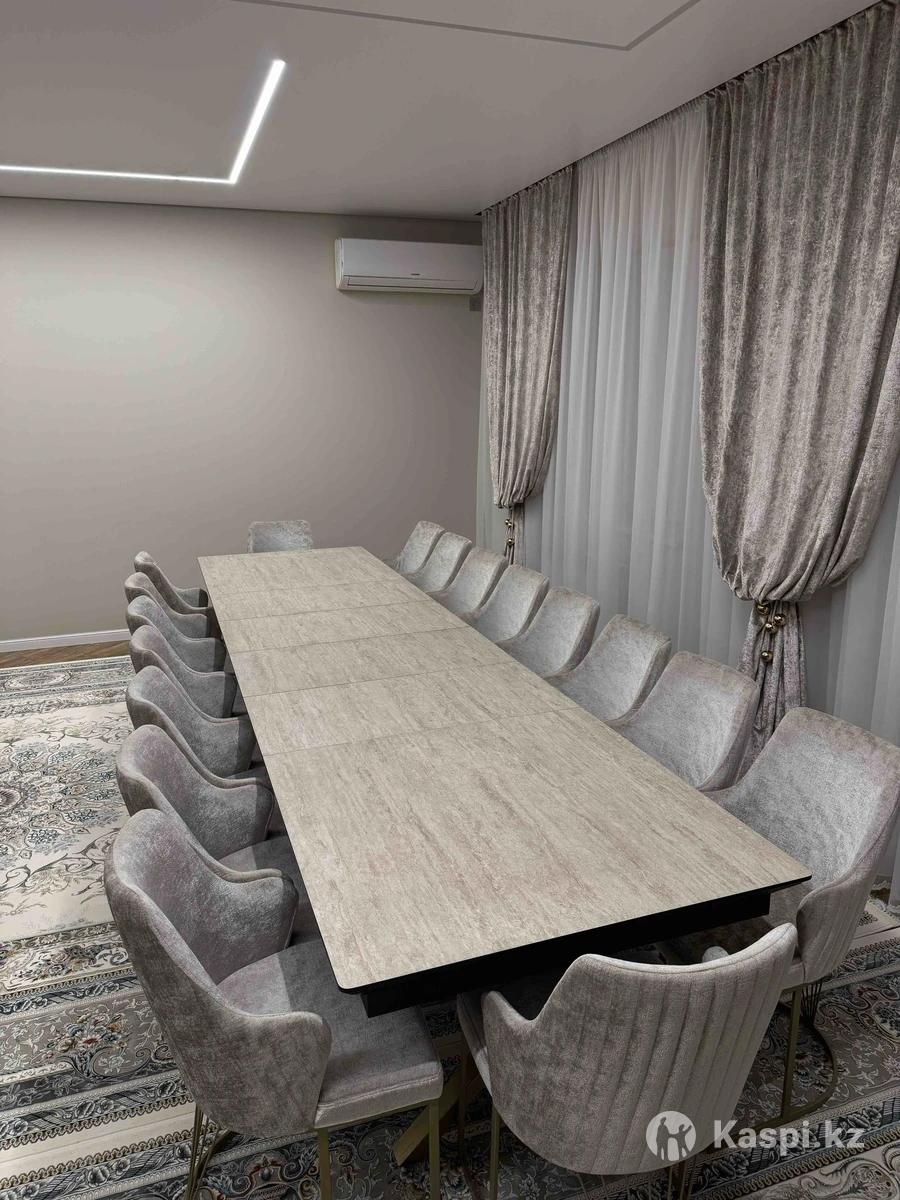 Үлкен дастархан стол + орындықтар Үйге, қонақ күтуге, отбасылық жиындарға өте ыңғайлы сәнді, сапалы үлкен стол сатылады. Столға 20 адам еркін сыяды. ✔️ Жағдайы: өте жақсы ✔️ Материалы: сапалы, берік үстел беті ✔️ Түсі: беж ✔️ Интерьермен керемет үйлеседі ✔️ Мықты, тұрақты, ыңғайлы орындықтармен бірге ✔️Стол жиналады