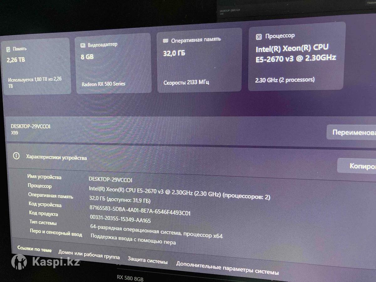 Продам мощный системный блок в отличном состоянии. Подойдёт для работы, монтажа видео, графики, стриминга и игр. Характеристики: • Процессор: 2× Intel Xeon E5-2670 v3 (24 ядерный / 48 потоков) • Оперативная память: 32 GB DDR4 • Видеокарта: Radeon RX 580 8GB • Накопитель: оставлю 1 тб или больше по договоренности • Материнская плата: X99 • Система: 64-bit Компьютер работает быстро и стабильно. Отлично тянет программы для работы и большинство современных игр. Подойдёт для: монтажа видео работы с графикой стриминга офисных задач игр Компьютер полностью готов к работе — включил и пользуйся. 📍 Можно проверить при покупке 💰 Возможен небольшой торг