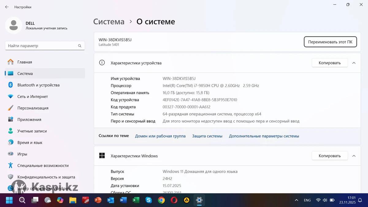 Продам ноутбук состояние нового. В комплекте сумка, беспроводная мышь. Основные характеристики: Производитель: DELL Модель: Latitude 5401 Процессор: intel Core i7-9850H Количество ядер потоков: 6/12 Частота процессора: 2600MHz Объем твердотельного накопителя: SSD 256Gb Patriot P300 M2 PCIe NVMe Объем оперативной памяти: DDR4 16Gb Размер экрана: 14' Разрешение экрана: 1920x1080 IPS 220 nits Тип видеокарты: intel UHD 630 Graphics 9th Generation Звук: есть Waves MaxxAudio Pro Веб-камера: есть HD 720p IR Cam fixed focus Сетевая карта: Intel i219LM Gigabit Ethernet Controller Беспроводная связь: Wi-Fi 5 (802.11ac) Dual-Band Wireless-AC 9560 (2.4x5GHz) Bluetooth 5.0 Интерфейсы: USB 3.1 Gen 1x3,USB Type-Cx1,HDMI-1.4,uSIM,RJ45,Fingerprintr,Micro-SD 4.0 card reader (SD,MMC,SDHC,SDXC),микрофон/наушники Combo. Емкость батареи: 68WH Windows 11 Home, Microsoft office 2024, Skype Гарантия 3 месяца!