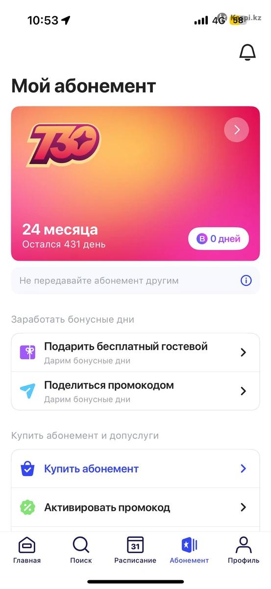 Отдам часть абонемента осталось 430 дней, 57 дней заморозка