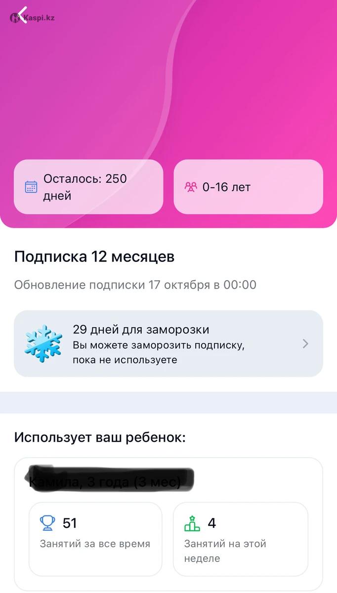 Абонемент различных активностей для детей от 0 до 16 лет: бассейн, беговел, мини-сад, англ.яз, англосад, гончарное искусство, различные спортивные и творческие кружки всего за 30 тыс в месяц. 30 дней посещений в месяц! Осталось 250 дней посещений(8 мес), 29 дней заморозки.