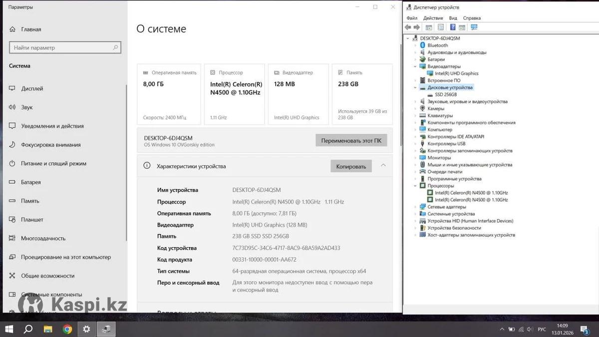 Acer Aspire 3 /Celeron N4500/8Gb ram/256Gb ssd/intel Uhd Graphics/