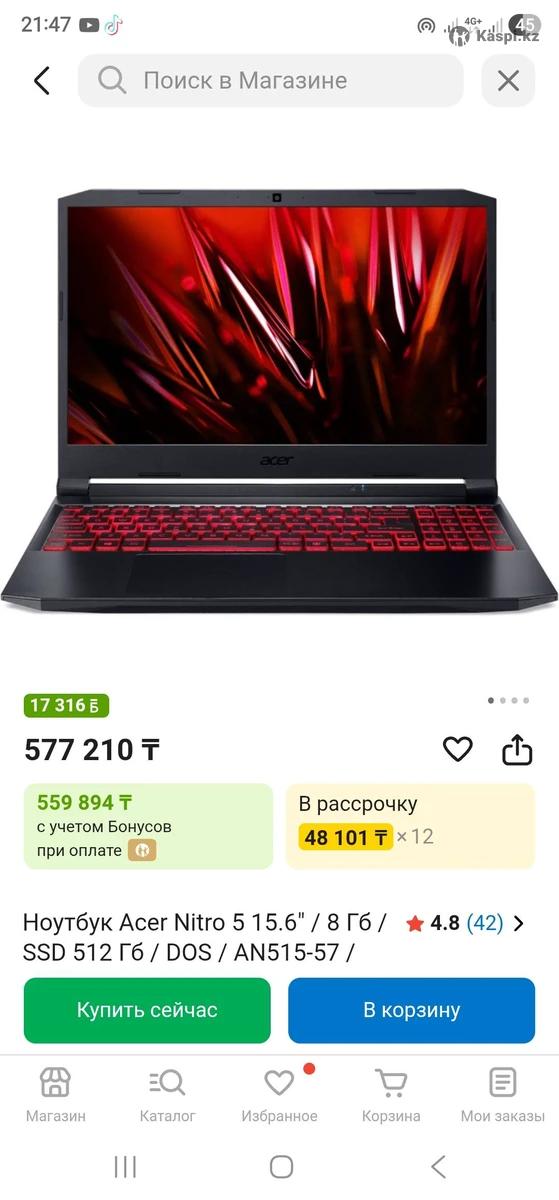 Мощный Aser Nitro 5 в отличном состояний! 10/10 100 % Ноутбук для игры и сложных программ! Включено очень редко. В нем еще не играли! Не шумит, не греется, батарея держит очень хорошо 4-5 часа! Все что фотографиях есть! В комплекте: Книжка, Ноутбук, Зарядка оригинал Шнур питание. +Новый БРЕНДОВЫЕ Сумка RIVACASE, Беспроводной игровой Мишка и коврик Microsoft! Мощный Характеристика: Модель: Aсer nitro 5 AN515-57 Процессор: 11300H 3.11 GHZ +турбо! Ядра 8 логических поток! Память SSD NVME M2: 512 gb высокоскоростной! +еще один слот можно добавить! Оперативный Память Ozu: 8 gb DDR4 +еще один слот можно добавить! Видеокарта игровой:INVIDIA Geforce RTX 3050 4 gb! DDR 6 новый поколение! + Intel R Iris XE для офисный работы! Графика: 144 Hz SlimBezel Разрешение: 1920x1080 FULL HD Клавиатура RGB с подсветкой! Windows 11 pro активирован с лицензий! Все необходимое программы установлен + Антивирус! Все современные порты имеется: USB3.2 3, TAPE SY port, LAN, HDMI, гнездо для наушника, Веб-камера HD, WiFi, Bluetooth и тд Такой комплект стоит около 550к в магазине! Цена прилично, просто так не беспокоить.