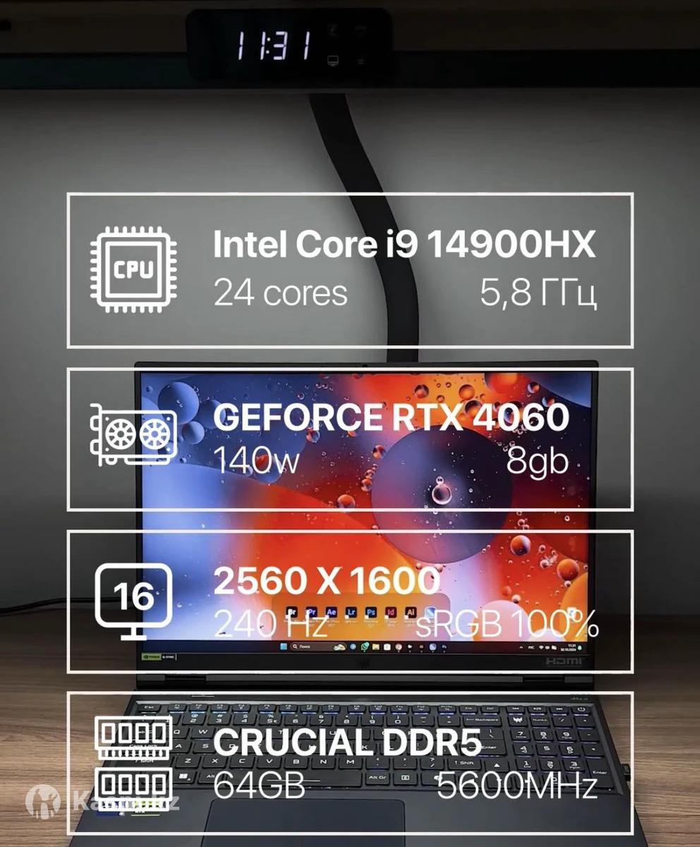 Мощный игровой ноутбук, который тянет все современные игры. Отлично подходит и для работы — стабильный, быстрый и производительный. Intel Core I9 14.900HX | 24 cores | 5,8 ГГц GeForce RTX 4060 | 140W | 8 Gb Экран 16 | 2560 Х 1660 | 240 Гц | sRGB 100% Crucial DDR5 | 64Gb ОЗУ | 5600MHz SSD 512 Gb