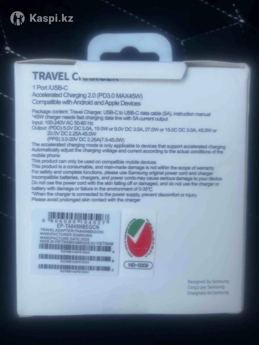 Новая зарядка со шнуром черный цвет