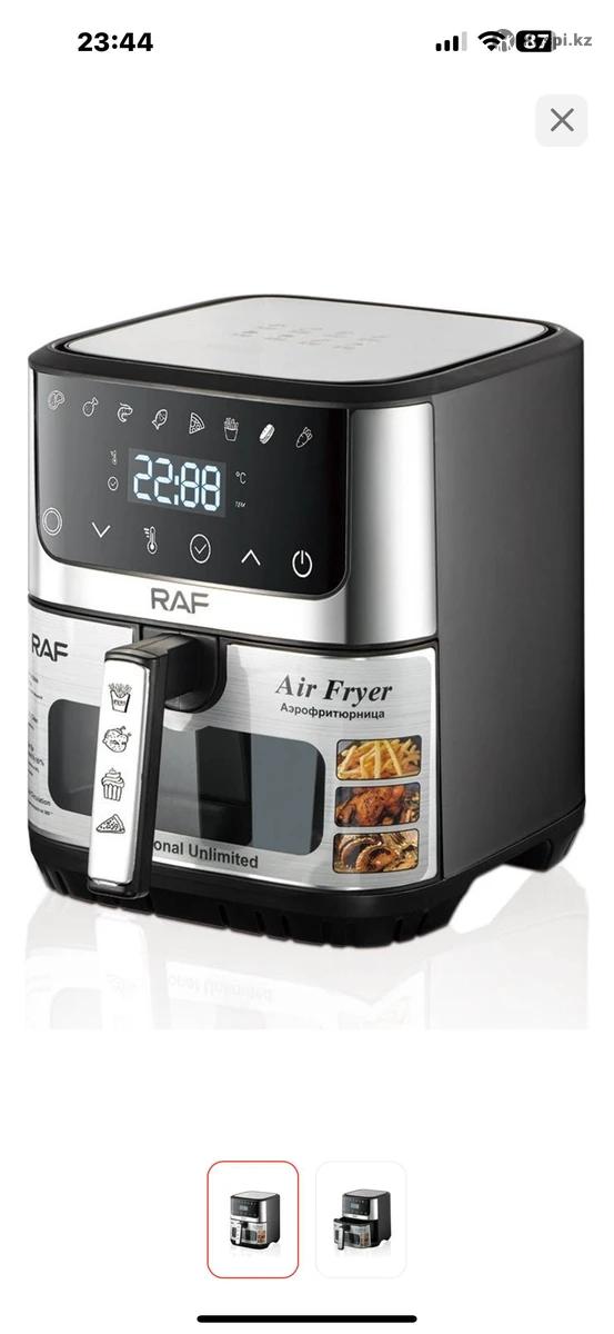 Аэрогриль (Air Fryer) RAF Современный аэрогриль RAF — это удобный и стильный кухонный прибор для приготовления вкусных и полезных блюд с минимальным количеством масла. Основные особенности: 🖥️ Сенсорная панель управления с LED-дисплеем 🍟 Автоматические программы для популярных блюд (картофель фри, курица, мясо, выпечка и др.) 🌡️ Регулировка температуры и времени для точного контроля приготовления 🔥 Технология циркуляции горячего воздуха — хрустящая корочка снаружи и сочная текстура внутри 🧺 Съемная корзина с антипригарным покрытием, легко очищается 🖐️ Термостойкая ручка с удобным захватом 🔒 Защита от перегрева и автоматическое отключение ✨ Компактный и современный дизайн, подходит для любой кухни Преимущества: Готовка без масла или с минимальным его количеством Быстрое приготовление по сравнению с духовкой Подходит для жарки, запекания, разогрева и выпечки Аэрогриль RAF — отличный выбор для тех, кто ценит удобство, скорость и здоровое питание.
