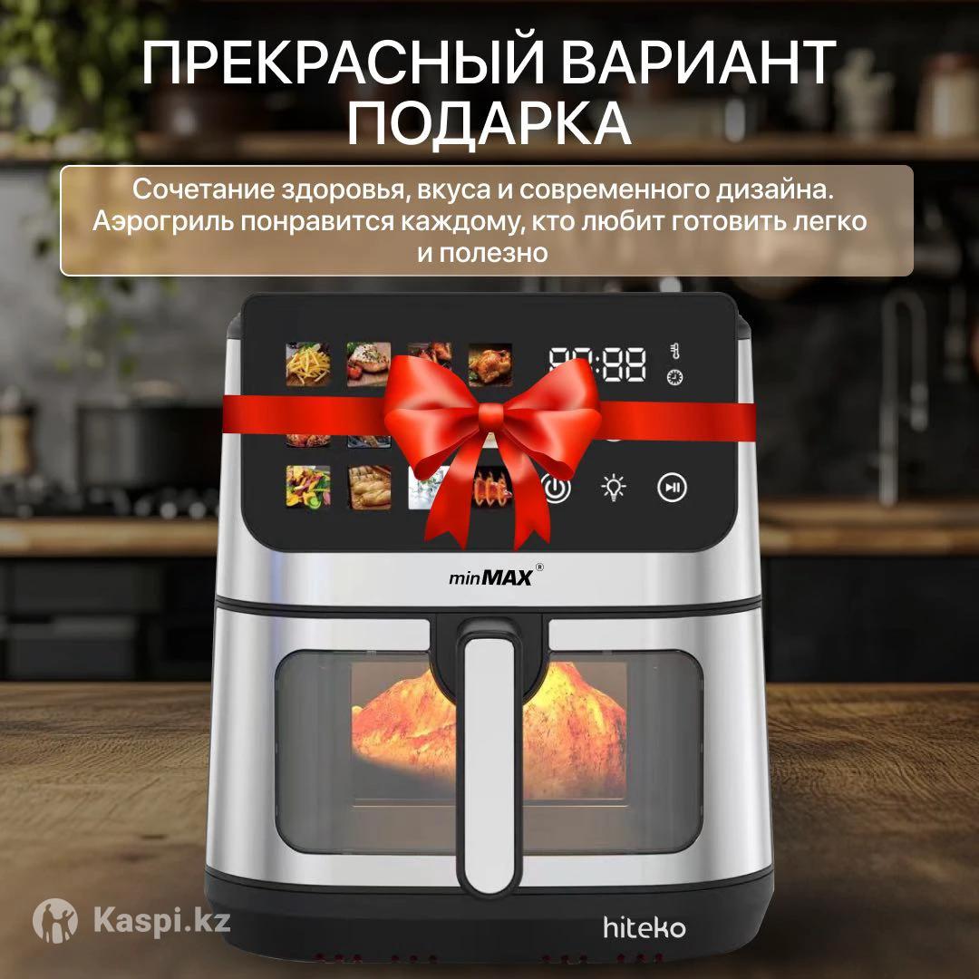 HITEKO MinMax — мощный аэрогриль нового поколения для всей семьи. Благодаря рекордной мощности 2200 Вт⚡г и увеличенному объему 12 литров 🥘, он с легкостью готовить большие порции: целую курицу, стейки, запеканки, овощи или два блюда одновременно. Современная система двойного нагрева сверху и снизу🔥, большое панорамное окно с подсветкой 👀✨ позволяет контролировать процесс, не открывая чашу. Корпус из нержавеющей стали🧊, сенсорное управление и яркий LED-дисплей🥗 создают ощущение премиального устройства, которое идеально впишется в любую кухню. 12 автоматических программ🍽️ помогут приготовить все — от хрустящего фри и крыльев до выпечки, рыбы и сушеных фруктов. Готовьте вкусно, полезно и без лишнего масла🫶🏼 — с заботой о себе и своих близких.