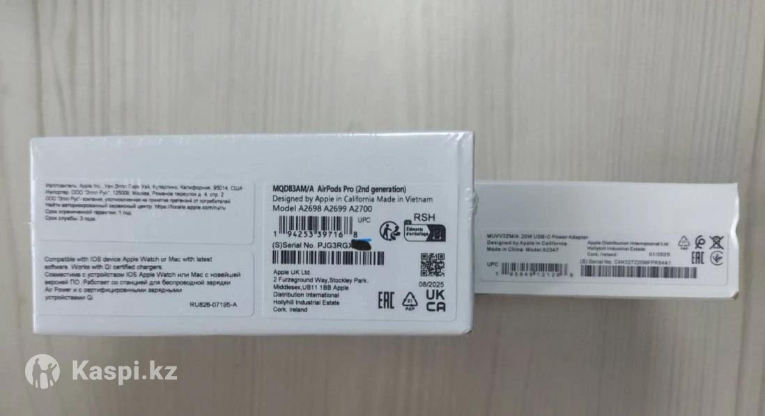 Продаю абсолютно новые Apple AirPods Pro 2 (2-го поколения) в идеальной, заводской запаянной упаковке. Комплект полный, включая оригинальное зарядное устройство Apple 20W (с американской вилкой). 🎧 Состояние: Герметично запечатаны, не распакованы, не активированы. Подарок, который не пригодился. 🛡️ ГЛАВНОЕ ПРЕИМУЩЕСТВО — APPLE CARE+! На устройствоактивирована расширенная гарантия с покрытием от повреждений до 1 сентября 2025 года. · ✅ Бесплатный ремонт или замена при любой поломке (включая падения, воду и прочее) · ✅ Экспресс-замена без ожидания ремонта · ✅ Приоритетная поддержка 24/7 от Apple · ✅ Серийный номер проверен на официальном сайте Apple (скриншот прилагается) В КОМПЛЕКТЕ ВСЁ КАК В МАГАЗИНЕ: · AirPods Pro 2 в заводской пленке · Оригинальный чехол с MagSafe · Кабель USB-C — Lightning · Оригинальное зарядное устройство Apple 20W · Набор амбушюр всех размеров Почему выгодно? В магазинах аналогичный комплектБЕЗ зарядки стоит от 105 000 тг + отдельно оформление AppleCare+ (еще 20 000 тг). Итого: 125 000 тг. Моя цена: 105 000 тг— вы экономите минимум 20 000 тенге! Но готова к торгам