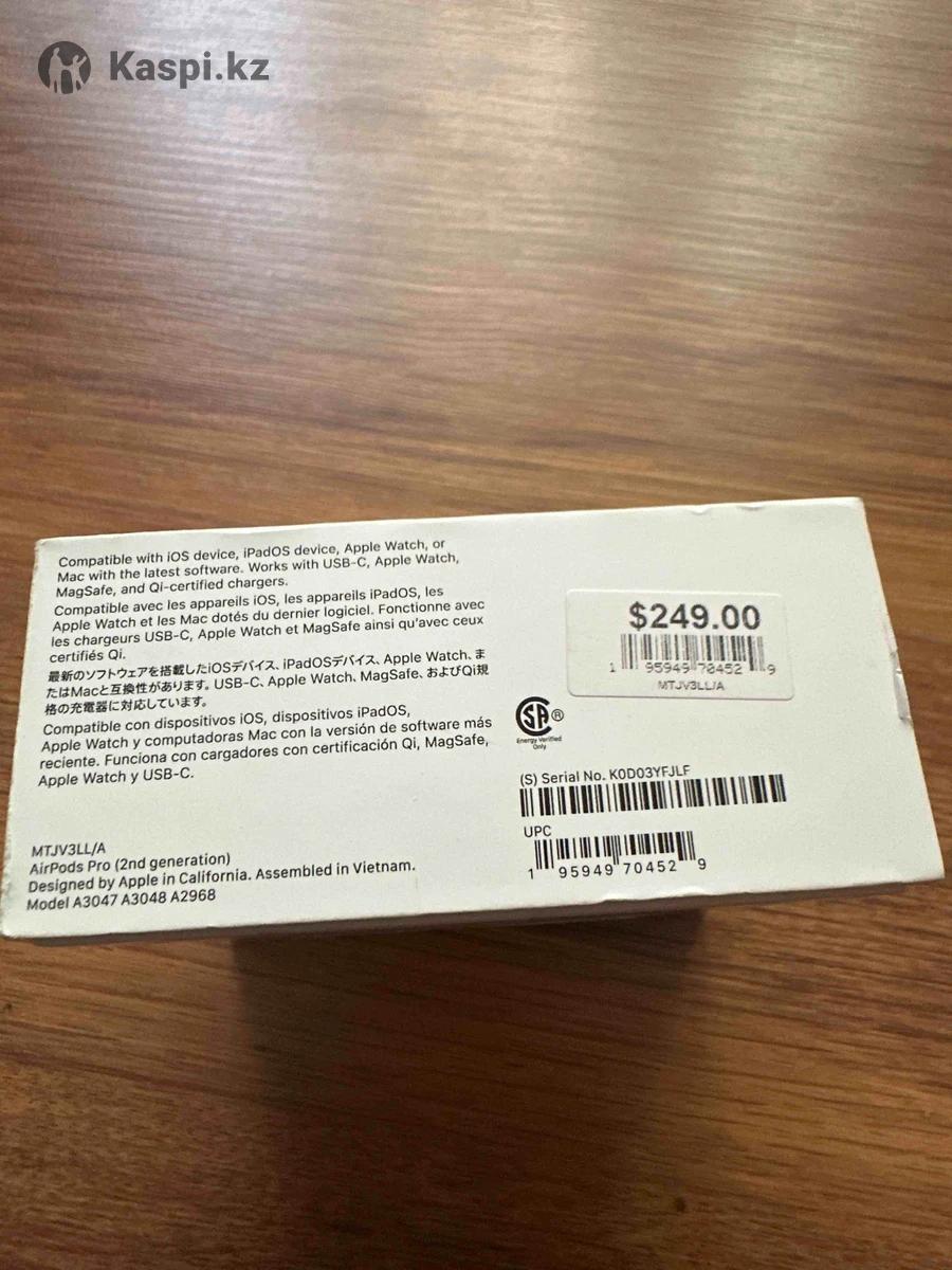 AirPods Pro 2nd generation with MagSafe Charging Case Продам AirPods Pro 2 поколения с кейсом MagSafe. Покупал в США за 249 Оригинал, не восстановленные. -Отличное состояние -Без повреждений -Полностью исправны -Все функции работают (шумоподавление, прозрачный режим и т.д.) -Почти не пользовался Использовались аккуратно. Звук чистый, батарея держит отлично. Цена: 80 000тг (Реальному покупателю небольшой торг) Пишите сюда или на