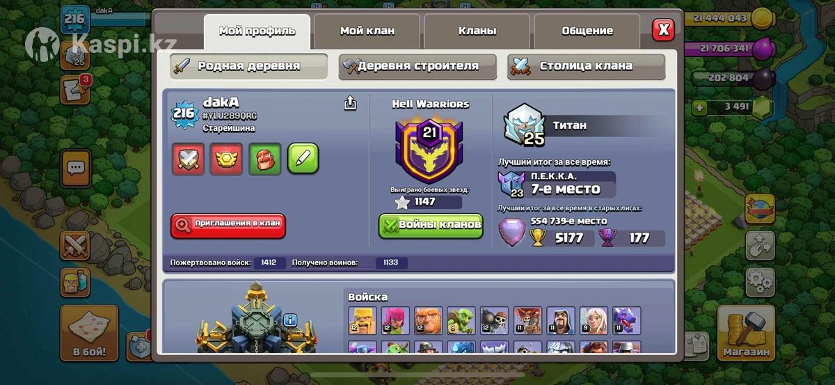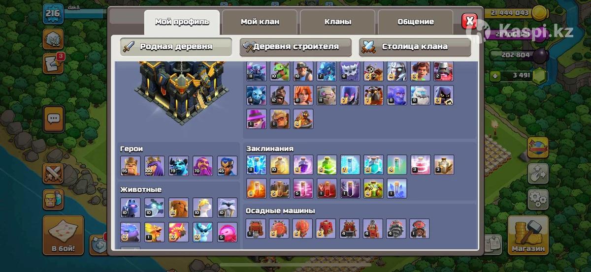 Королева 100lvl Король 95lvl Принц 79lvl Хранитель 70lvl Чемпион 45lvl Есть скины на героев 3500 гемов