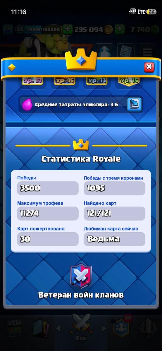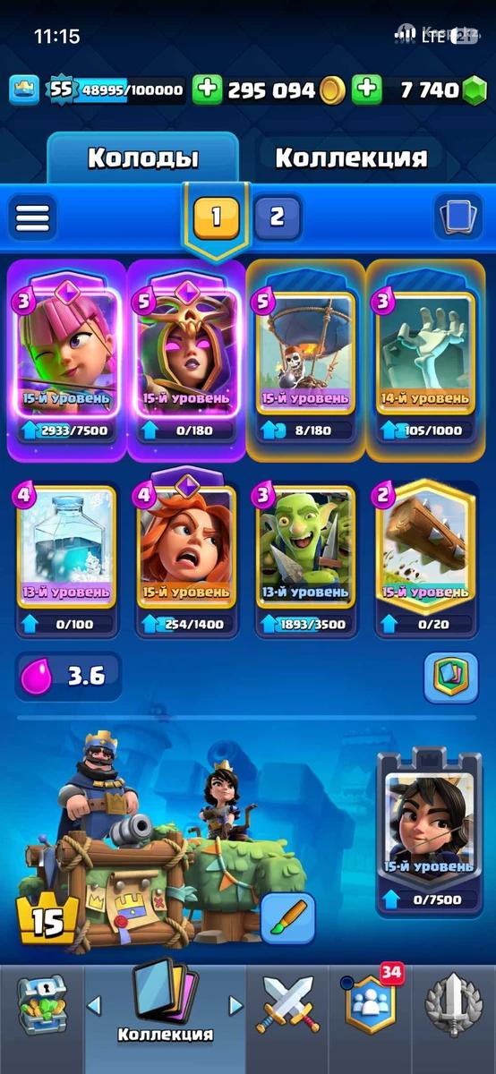 Продам личный аккаунт clash royale Об акк👇 11200+ кубок 55 уровень 7740 кристаллов 5 карт 15 уровень И многое другое