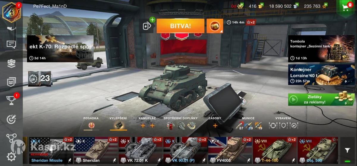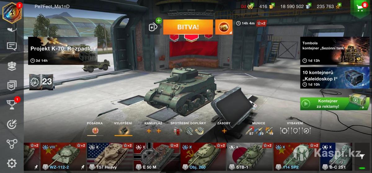 Общая информация: Регион:EU Никнейм: Pe7Fect_Ma1nD Валюта: Кредиты: 5 875 758 Свободный опыт: 197 271 Премиум и редкие танки: X уровень: T57 Heavy (США, ТТ) E 50 M (Германия, СТ) STB-1 (Япония, СТ) FV4005 (Великобритания, ПТ-САУ) VK 90.01 (P) и VK 72.01 K (редкие немецкие ТТ) B-C 25 t (Франция, СТ) Carro 45t (Италия, СТ, коллекционный) Progetto 65 (Италия, СТ) Rinoceronte (Италия, ТТ) T77 (США, премиум ТТ) BZ-122 TM (Китай, премиум ТТ) VIII уровень (и ниже): Skoda T 27, Progetto 46, T-44-100 и Дракула Су 122-44