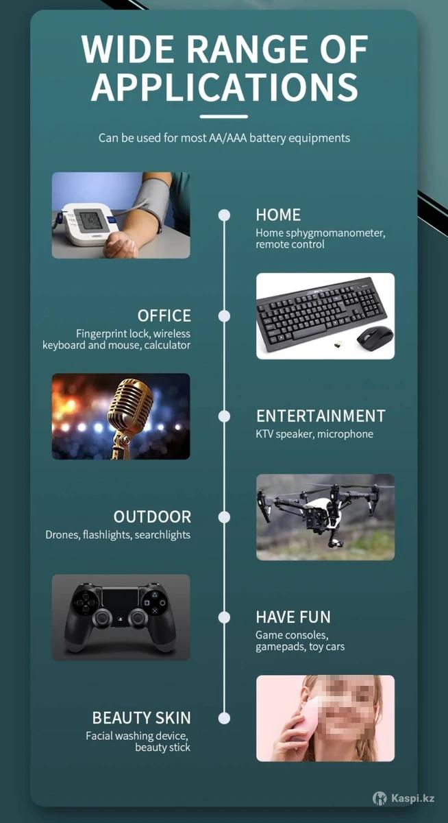 Продам новые Ni-MH (никель-металлогидридные) аккумуляторы формата АА и AAA- PUJIMAX. Размеры аккумуляторов- 1450мм и 1044мм. Номинальное напряжение- 1,2 В; Ёмкость- 2700мАч и 1100мАч; Срок службы- 1200 циклов; Рабочая температура- 25- 60 гр по Цельсию; Стандарт- Q/PJDZ 002. Этот тип аккумуляторов разработан для замены никель-кадмиевых аккумуляторов! Аккумуляторы без эффекта памяти! Низкий саморазряд! Взрывобезопасны! Экологически безопасны! Отлично подходят для продолжительной работы в устройствах с низким энергопотреблением, например- пульт дистанционного управления, часы. Аккумуляторы совместимы с многими электронными устройствами, беспроводными мышками, пультами дистанционного управления, фотоаппаратами, радиоуправляемыми моделями и т.д. Цена за 1шт: АА- 1500. За 4шт- 5000. ААА- 1000. За 4шт- 3000. Пишите, если не сможете дозвониться. Самовывоз в будние дни- после 18:00, Утеген батыра/ Кабдолова (Мате Залки/ Маречека). Доставка по г.Алматы в пределах маршрутов общественного транспорта- от 500