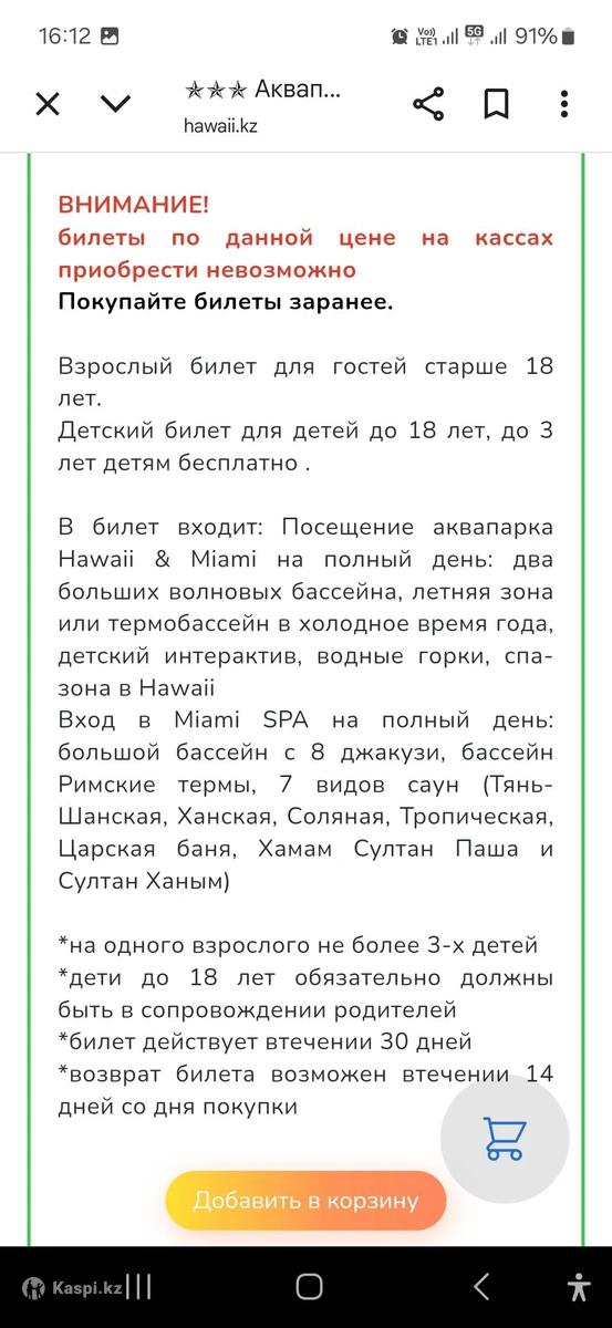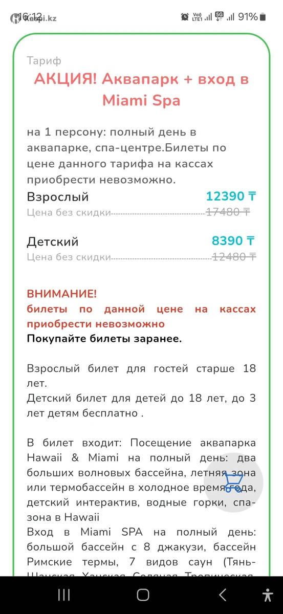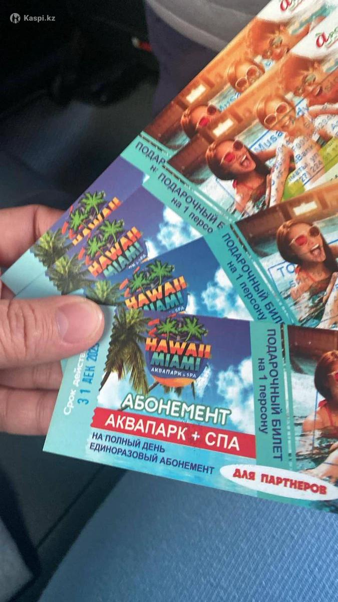 Билеты на Аквапарк Гавайи и Майами на полный день со Spa. По 9000 тенге. Передача билетов в руки или прямо на месте.