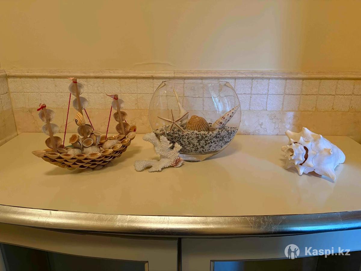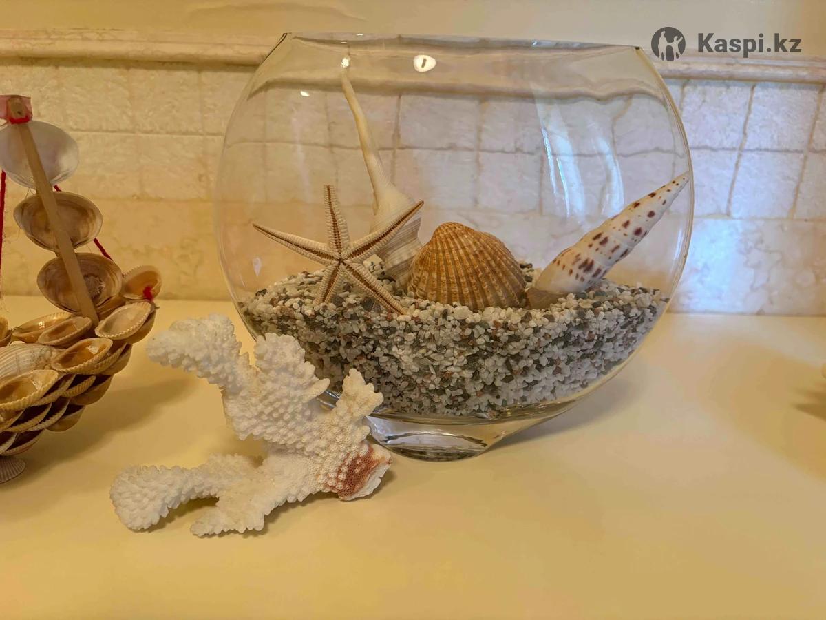 Аквариум. Маленький. Ракушка большая. Кораблик из ракушек.