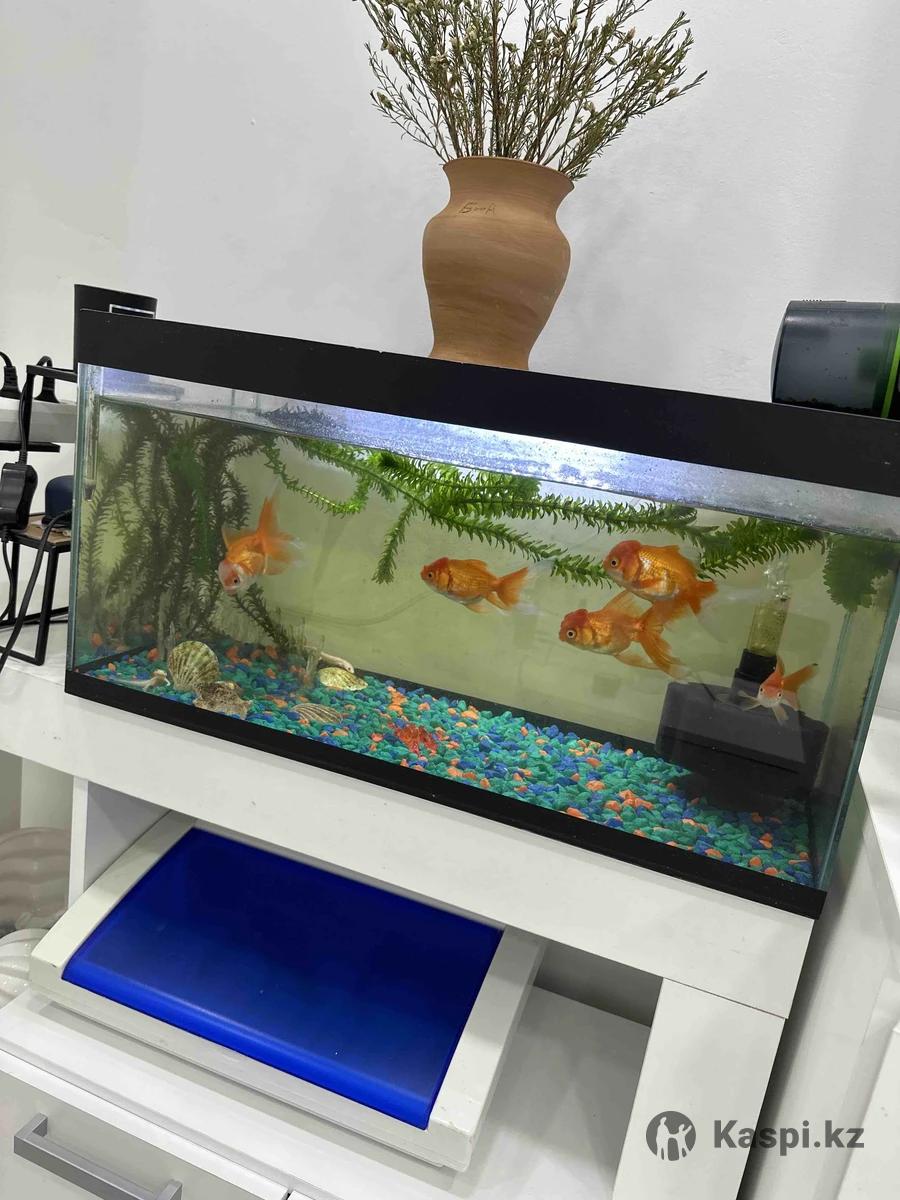 Аквариум с крышкой 40л полный комплект. 5 золотых рыбок (молодые) , 2 тритона, 1 жабка, растение натуральная,мощный фильтр , подсветка , камни и ракушки, есть автокормушка , имеется шланг , сетка для улова и средства для воды. Продаю потому что переезжаю.(воду меняю раз в 2/3 месяца .)