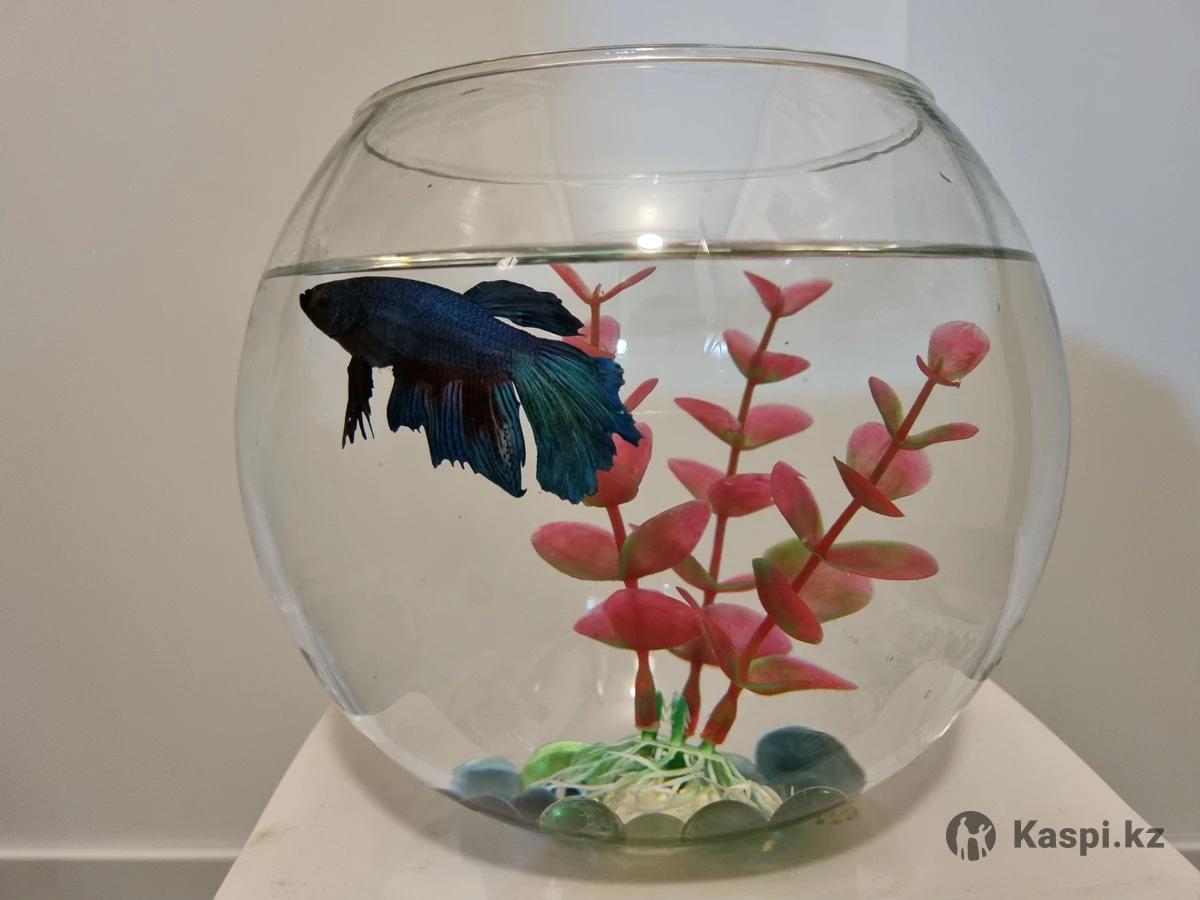 Идеальное решение для подарка.Петушок в круглом аквариуме 2л с искусственным декором.