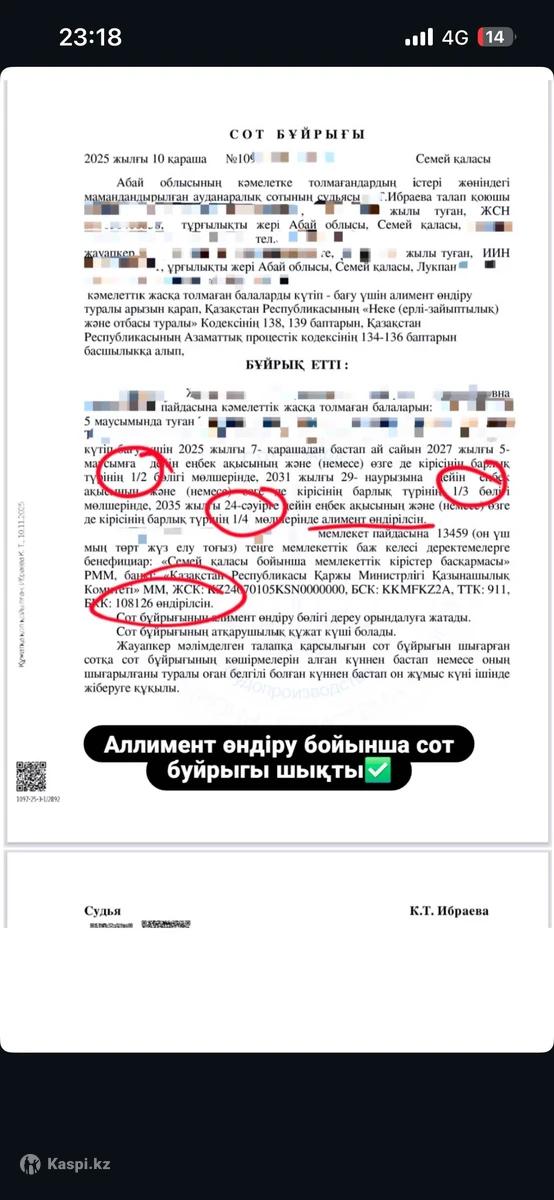 Алимент өндіріп сот бұйрығын шығаруға көмектесемін