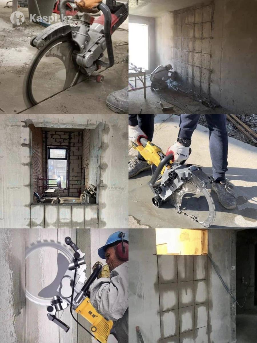 Алмазная резка-это самый чистый и точный способ сделать проемы под окна и двери. Водяное охлаждение:на алмазный диск подается вода,которая моментально охлаждает бетонную пыль,превращая ее в шлам Прорезает даже самую мощную арматуру в бетоне за один проход В отличии от перфоратора,алмазный диск не вызывает микротрещин в стенах После прорезания диском проем не требует долгого выравнивания штукатуркой
