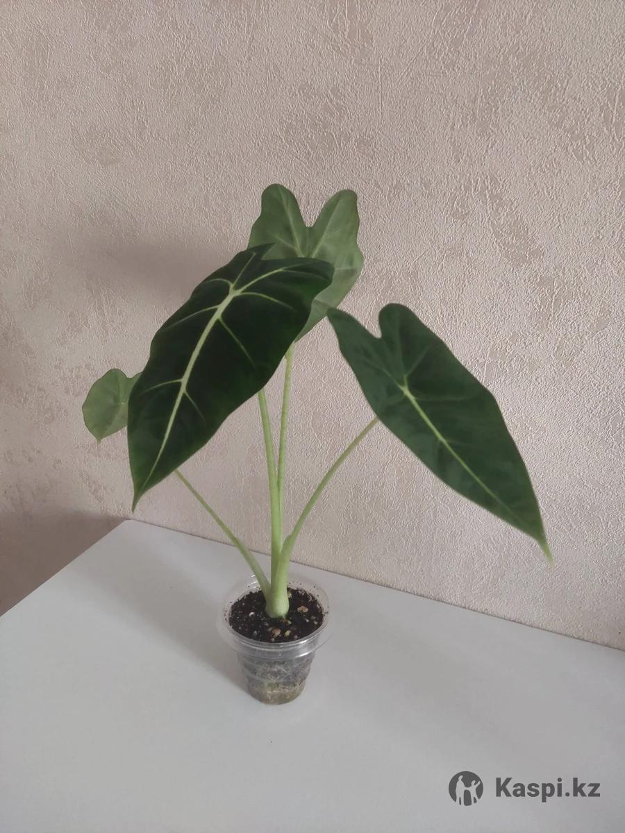 Росток алоказии Мишкольца. Бархатная неприхотливая красавица с гигантскими листами. Фото материнского растения прилагаю. Сидит в кокосовом субстрате.