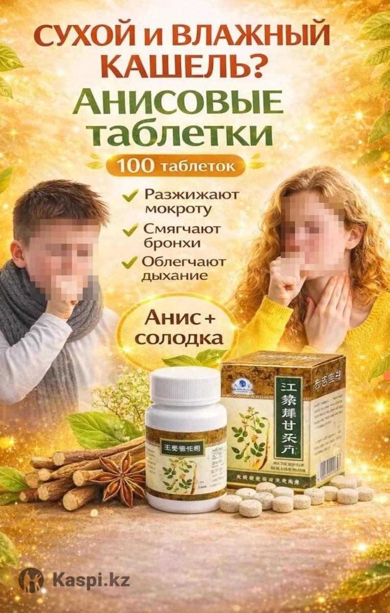 Цена 900 тг 🔥 Анисовые таблетки от кашля В последнее время китайская народная медицина набирает популярность во всем мире, благодаря высокой эффективности и натуральным составляющим, биологические добавки из Китая, пользуются устойчивым спросом и доверием у людей, заботящихся о своём здоровье. Китайские анисовые таблетки от кашля - натуральный растительный препарат от кашля и заболеваний дыхательной системы на основе аниса и корня солодки. Он эффективно устраняет непродуктивный кашель, смягчая слизистую бронхов обеспечивает отхаркивающее действие. Содержащиеся в препарате флавоноиды эффективно снимают спазм мускулатуры бронхов, оказывая ранозаживляющее и спазмолитическое действие. Противовоспалительное действие обеспечивается стероидными соединениями, сходными по своему строению с теми гормонами, которые в организме человека вырабатываются корой надпочечников — глюкокортикостероидами. Состав: Анис, корень солодки, мальтодекстрин, борнеол, сахар, кукурузный крахмал. Показания к применению: простуда, сухой и влажный кашель, трахеит, ларингит, фарингит, острый и хронический бронхит. Способ применения: По 1-2шт. сублингвально (под язык) или буккально (за щеку) 3-4 раза в день, рассасывать. Рекомендуемый курс лечения 5-7 дней. Побочные действия: При соблюдении доз и рекомендаций не имеет побочных действий. #анисовые