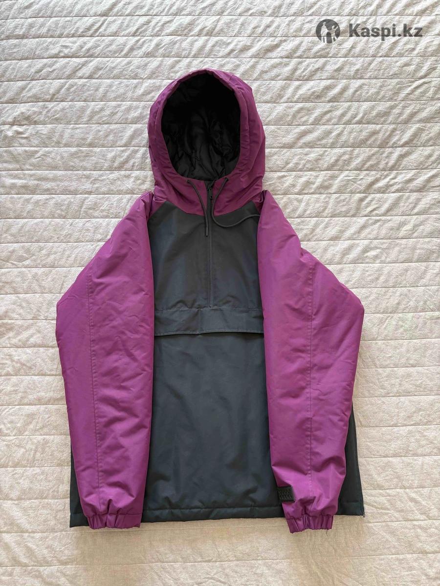 Мужская куртка анорак в отличном качестве и состоянии без следов носки размер средний м. 3 кармана, по бокам растягивается, капюшон на шнурках, бренд Befree. Цвет баклажан с темно серым. Материал водоотталкивающий.