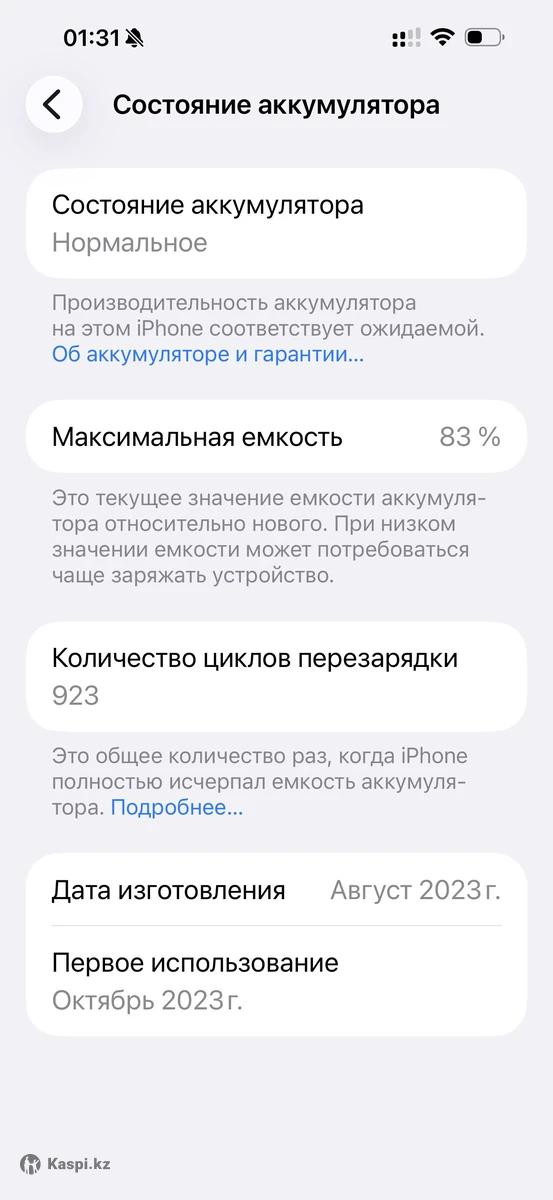 iPhone 15 Pro Max, 1 TB (титановый) — идеальное состояние Продаю iPhone 15 Pro Max, американская версия (eSIM) • Память: 1 TB • Цвет: титановый • Состояние аккумулятора: 83% Телефон в идеальном состоянии, без единой царапины. Не вскрывался, не ремонтировался, все комплектующие оригинальные. Работает стабильно, без сбоев: Face ID, камеры, звук — все отлично. Использовался очень аккуратно, без падений и попадания влаги. Поддержка eSIM (физической SIM нет). 📦 Комплект: (укажи, если есть) 🔍 Любые проверки при встрече.