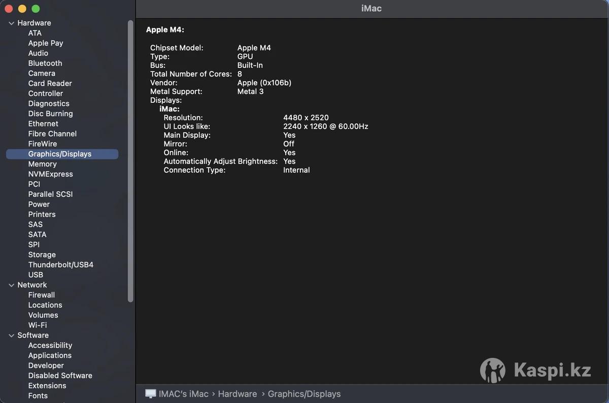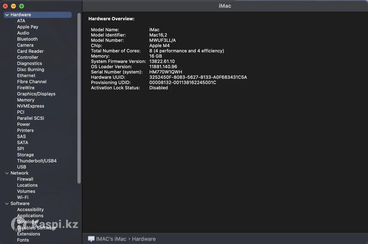Процессор Apple M4(8 ядер) и GPU(8) Оперативная память 16 Гб Дисплей 24 дюйма Разрешение экрана 4480x2520 (16:9) пикс / Retina 4,5K Яркость 500 кд/м2 SSD 256 Гб Материал корпуса алюминий Почти новый, использовался мало из-за того что непривычный интерфейс и пришлось вернуться на Windows. Полный комплект с клавиатурой английской и мышью, коробки нет, потому что привезены с Америки