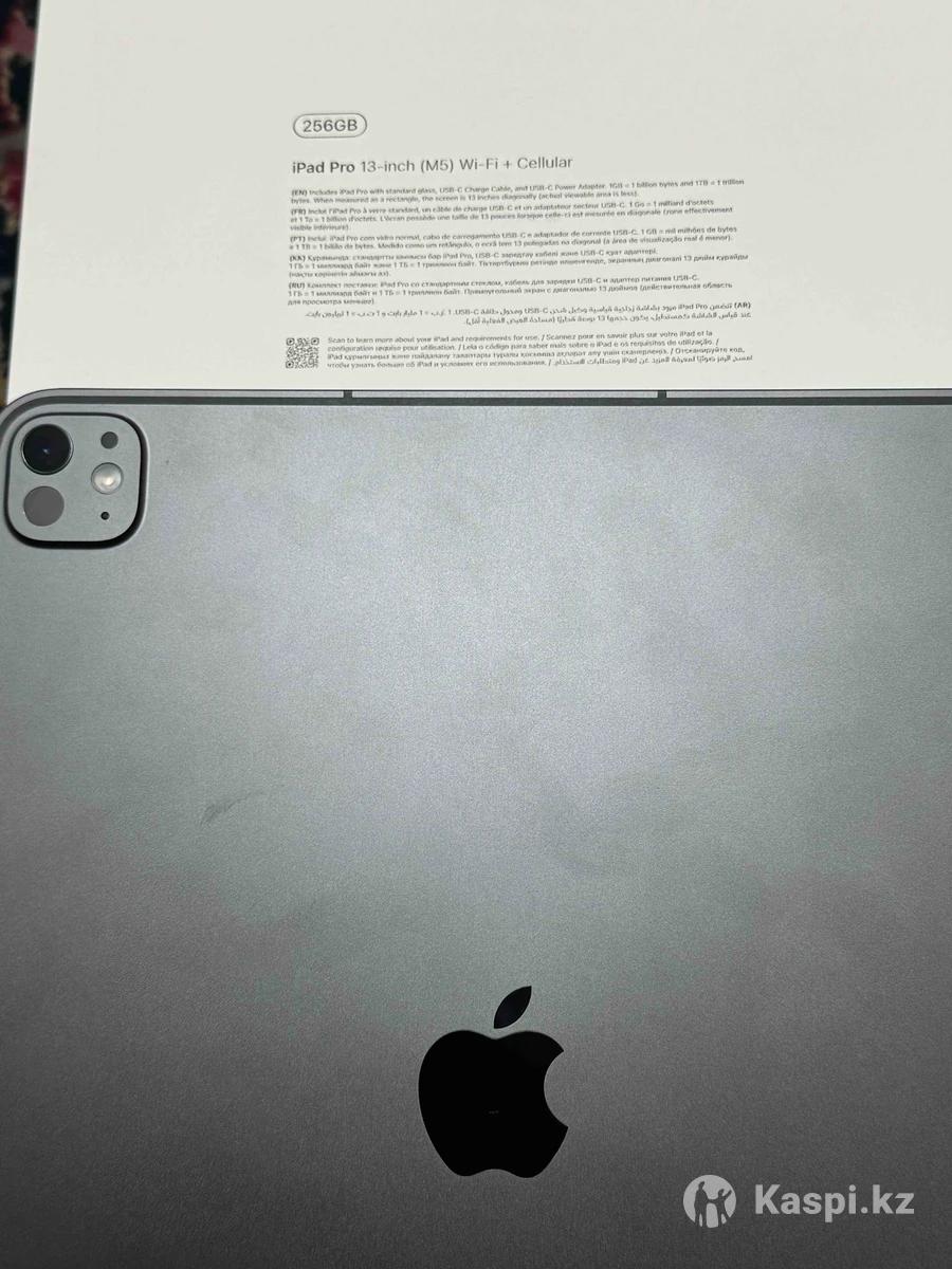 Apple iPad Pro 13 (2025, M5) Wi-Fi + Cellular 256GB Продам iPad Pro 13” на новейшем чипе M5 (2025 года). Версия Wi-Fi + Cellular — можно вставить SIM-карту и пользоваться интернетом без привязки к Wi-Fi. 📌 Память: 256 GB 📌 Состояние: идеальное 📌 Включался только для проверки, фактически новый (время работы около 5 минут) 📌 Полный комплект 📌 Имеются чек и документы Без царапин, сколов и дефектов. Мощный, быстрый, большой 13-дюймовый экран — отлично подойдет для работы, бизнеса, монтажа, графики и повседневных задач. Цена: 900 000 тг Торг уместен при встрече. Причина продажи — изменились планы. 0 циклов заряда батареи - абсолютно новый Приобретал за 1.119.004 чек имеется