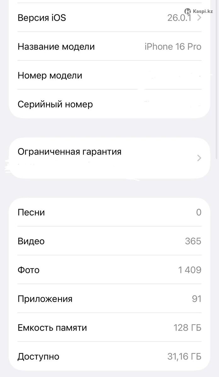 Apple Iphone 16 Pro 128gb Black Titanium состояние отличное. Без ни каких дефектов. Состояние аккумулятора 95% Все в оригинале. iOS 26.0.1