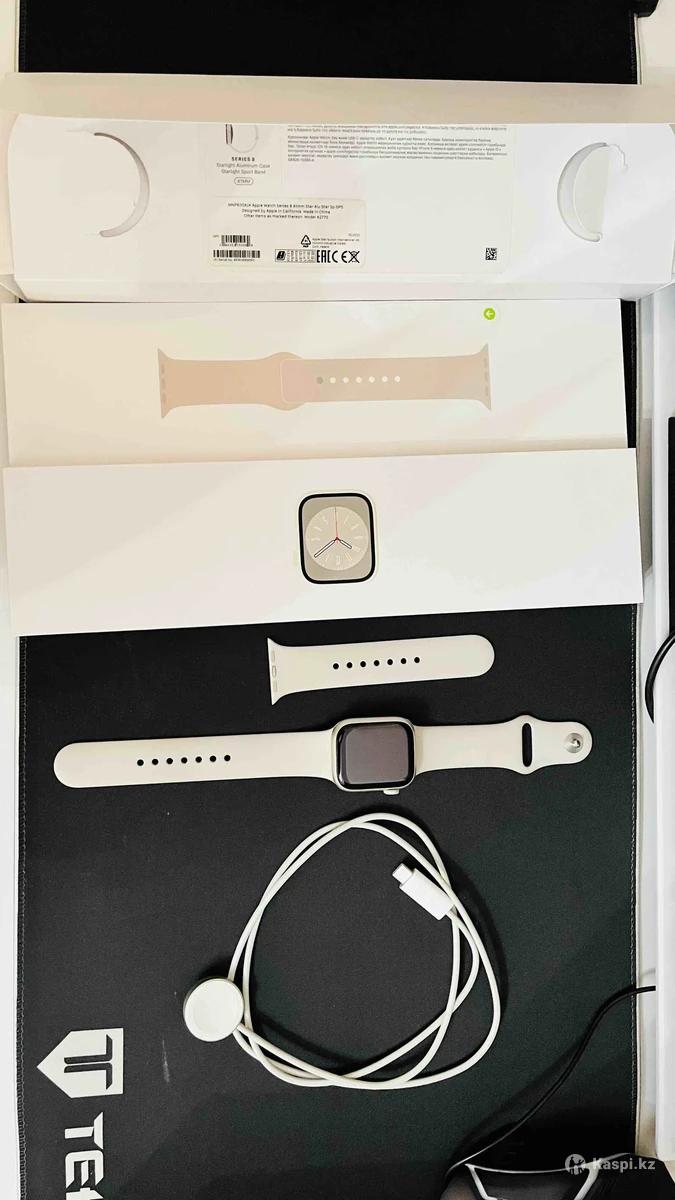 Продам эпл вотч 8 серия 41 мм в комплекте:оригинал зарядчик,оригинал ремни и каропка документ