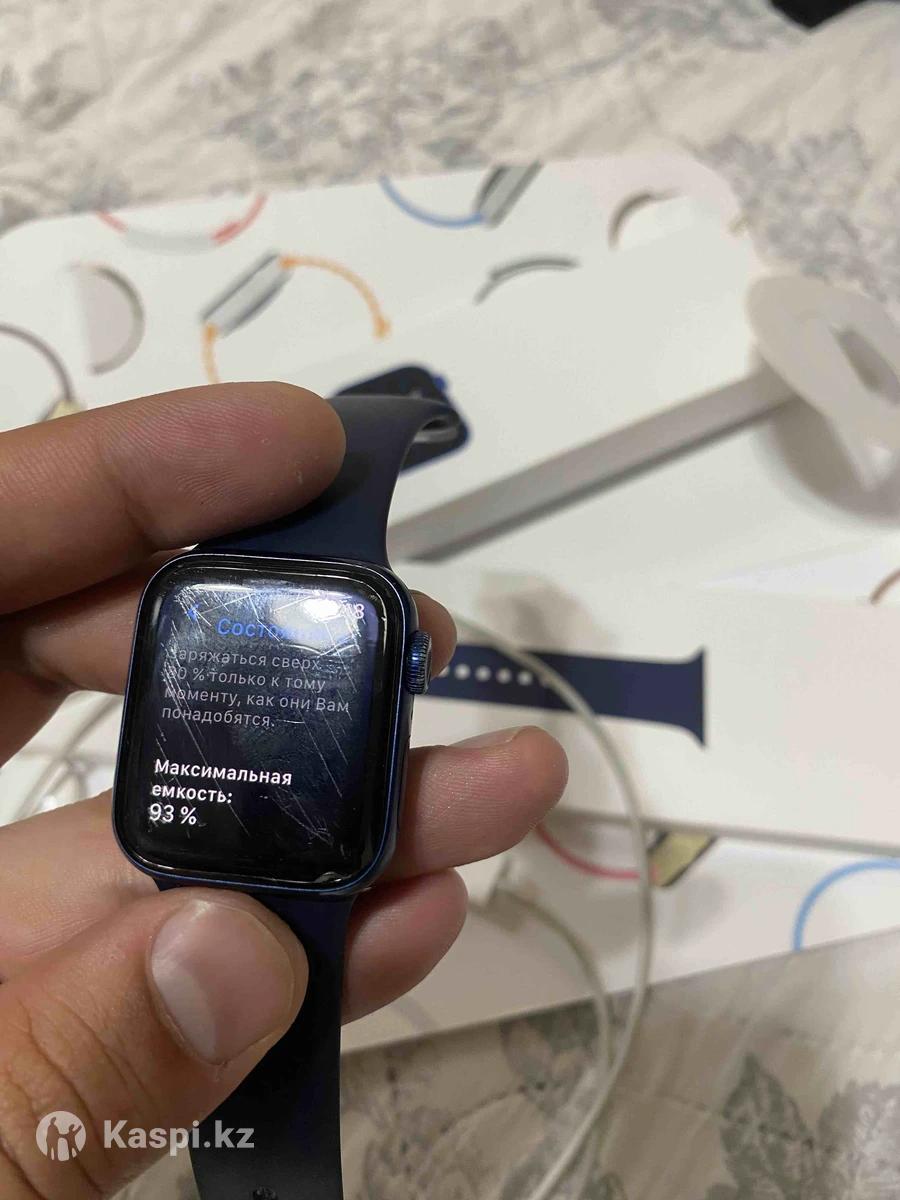 Apple Watch 6 40мм часы в идеальном состоянии есть немного царапина без дефектов,вся комплектация есть коробка зарядка. Емкость 93%