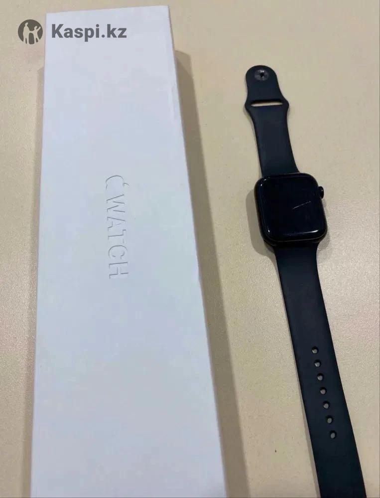 Apple Watch 7, 45 мм. Часы в идеальном состоянии, без царапин и повреждений. Полный комплект: оригинальная коробка, зарядка, ремешок. Размер корпуса 45 мм — популярная модель, отлично держит батарею, все функции работают.