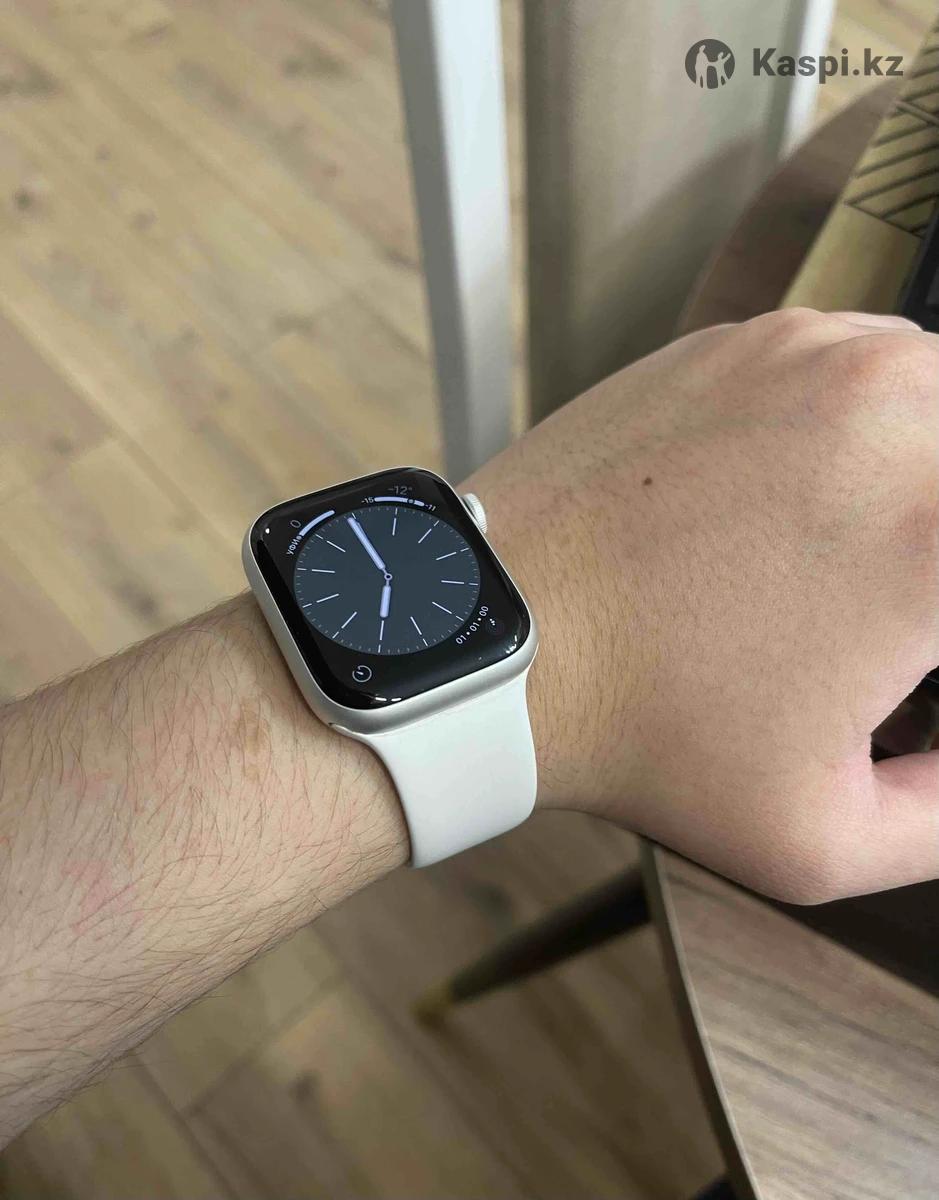 Часы Apple Watch 8 серии. В отличном состоянии. 45 mm Белый ремешок, алюминий. Зарядка комплекте.