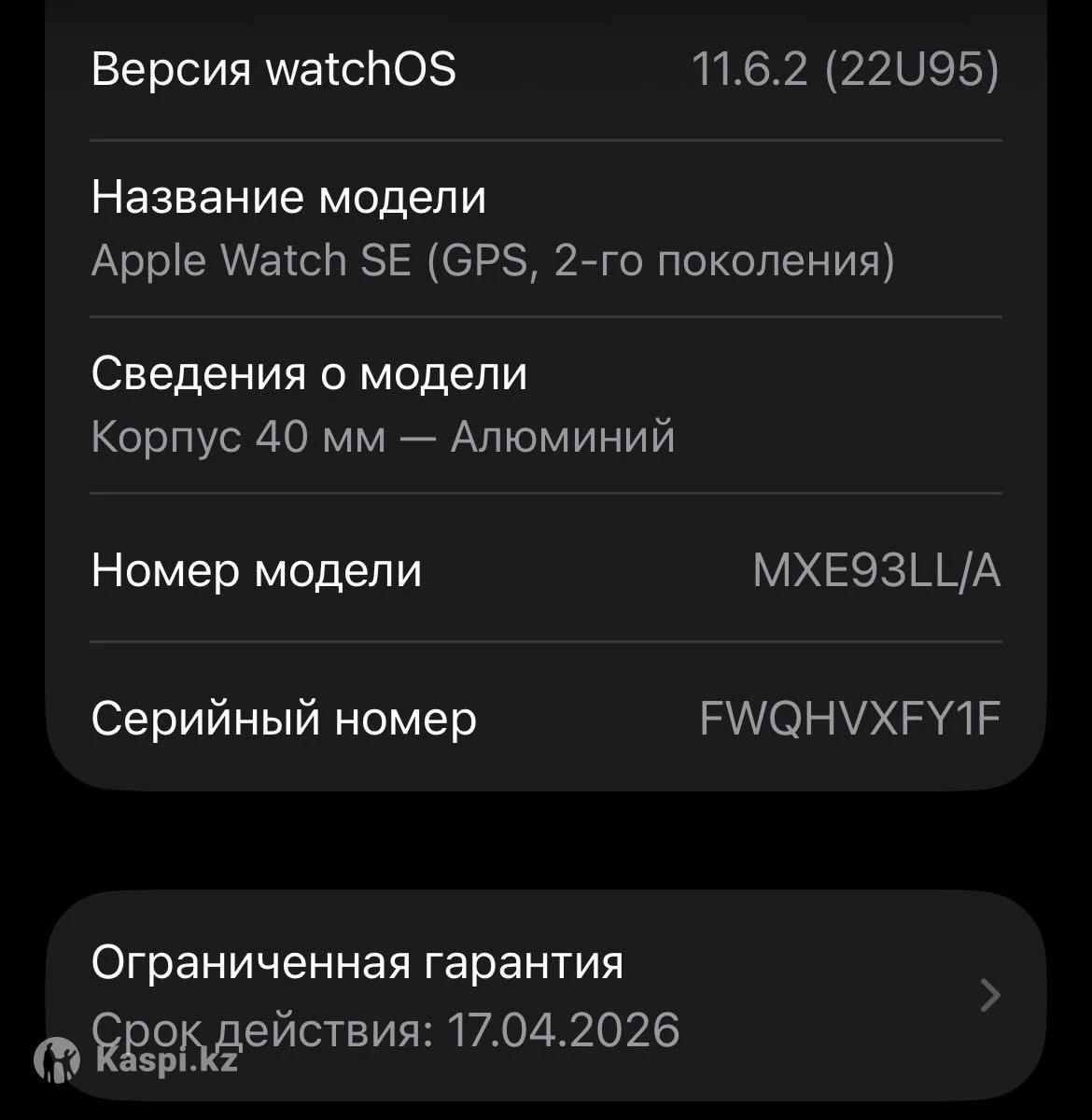 Продам Apple Watch SE (2-го поколения), 40 мм, оригинал Часы в отличном состоянии, полностью исправны. Комплект: • оригинальная коробка • оригинальная зарядка • часы На гарантии до апреля 2026 года Отличные часы для спорта, уведомлений и повседневного использования. 📍 Самовывоз /отправка по договорённости.