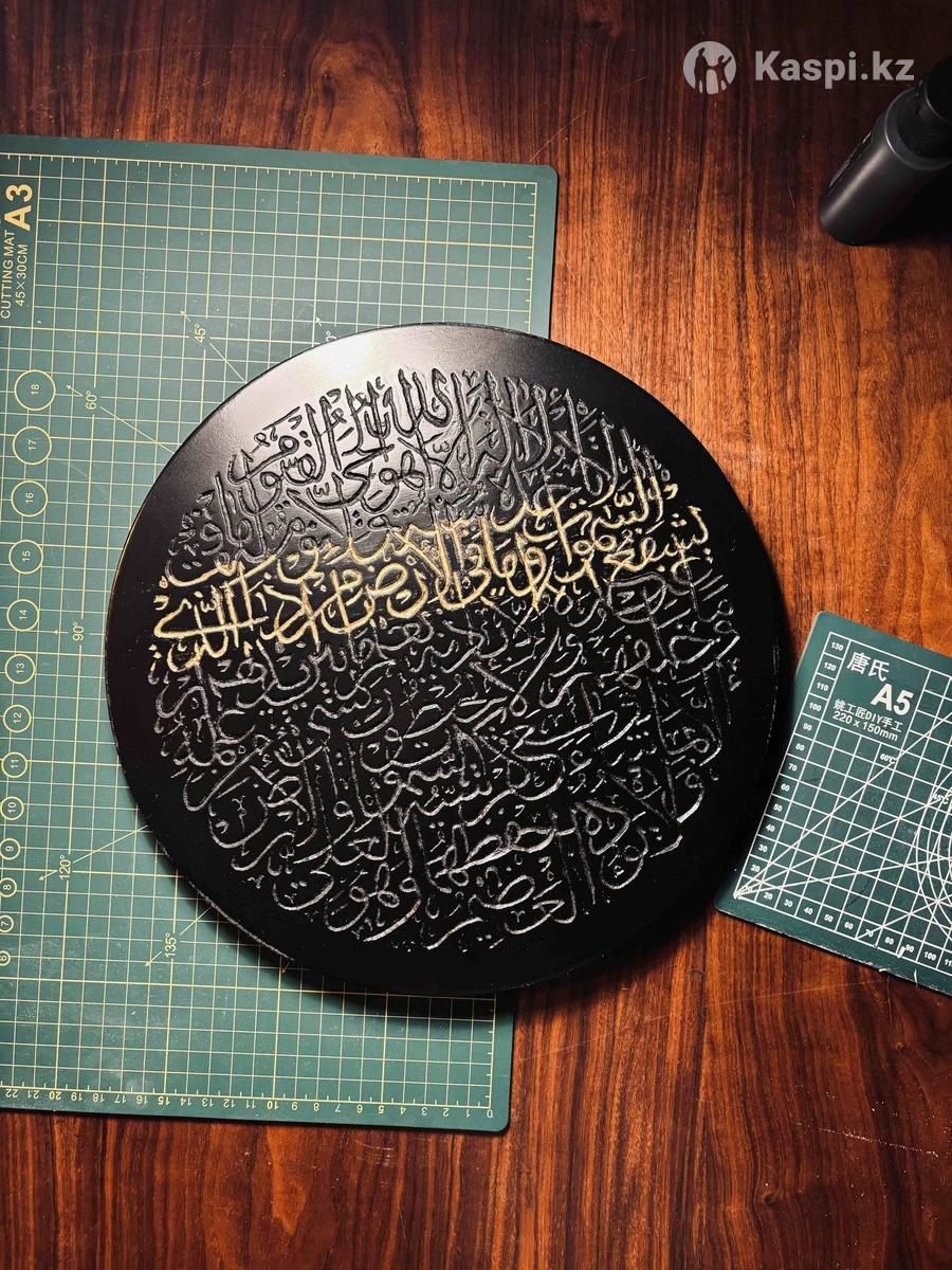 Картина выполнена в технике резьбы по дереву. Аят Аль-Курси. МДФ, акрил. Размер 3030 см. Единственный экземпляр.