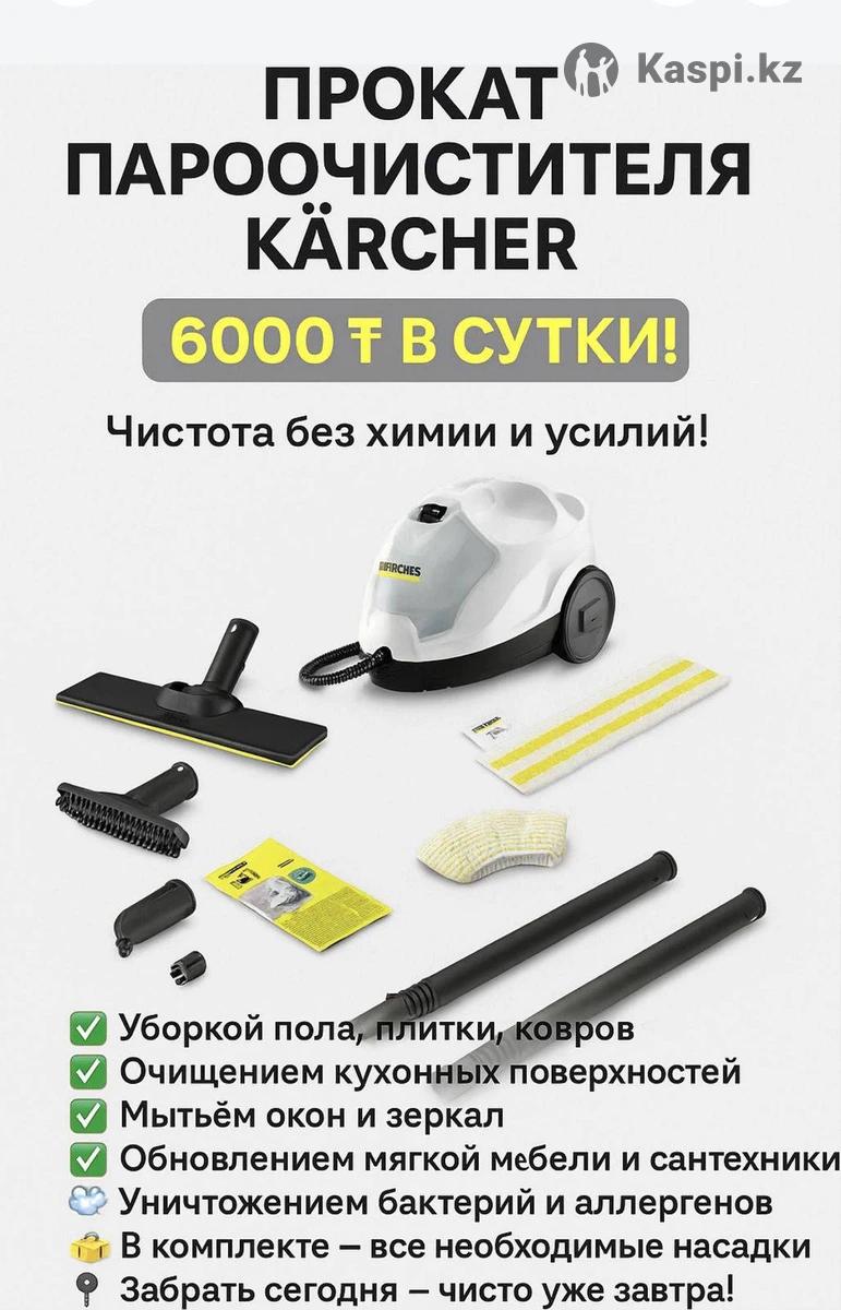 Прокат пароочиститель Karcher. Есть насадки для окон, и доп насадки для уборки.Писать на
