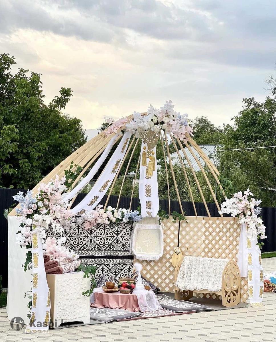 Аренда полуюрты для Наурыз беташар.сырга салу Красивые оформление арки .баннера