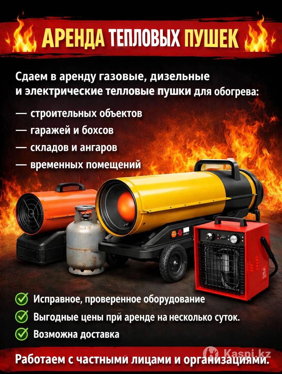 Сдаем в аренду газовые, дизельные и электрические тепловые пушки для обогрева: — строительных объектов — гаражей и боксов — складов и ангаров — временных помещений ✔️ Исправное, проверенное оборудование ✔️ Выгодные цены при аренде на несколько суток ✔️ Возможна доставка Работаем с частными лицами и организациями.