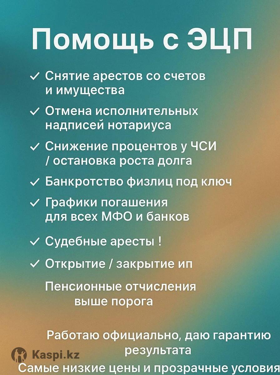 Помощь с ЭЦП ✔ Снятие арестов со счетов и имущества ✔ Отмена исполнительных надписей нотариуса ✔ Снижение процентов у ЧСИ / остановка роста долга ✔ Банкротство физлиц под ключ ✔ Графики погашения для всех МФО и банков Судебные аресты ! Открытие /закрытие ип ✔ Работаю официально, даю гарантию результата ✔ Самые низкие цены и прозрачные условия Пишите — разберу вашу ситуацию бесплатно и предложу решение!