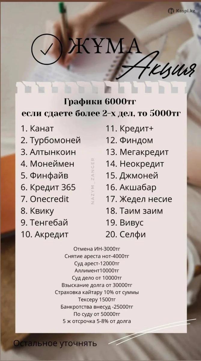 Арест шешу 1-2 кунде Жедел график 1-3 кунде Сот істері Банкротства тб