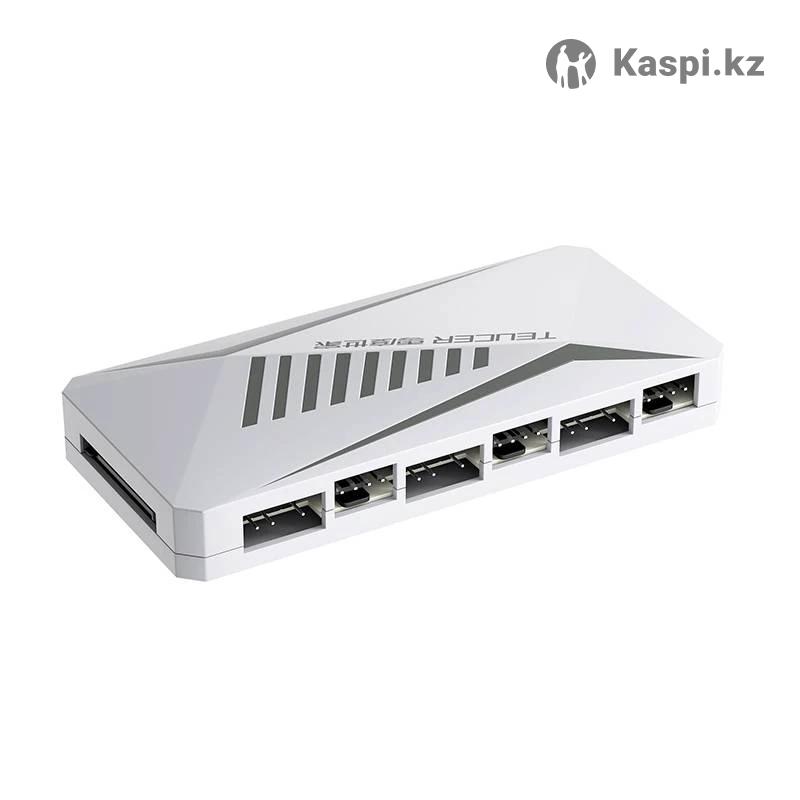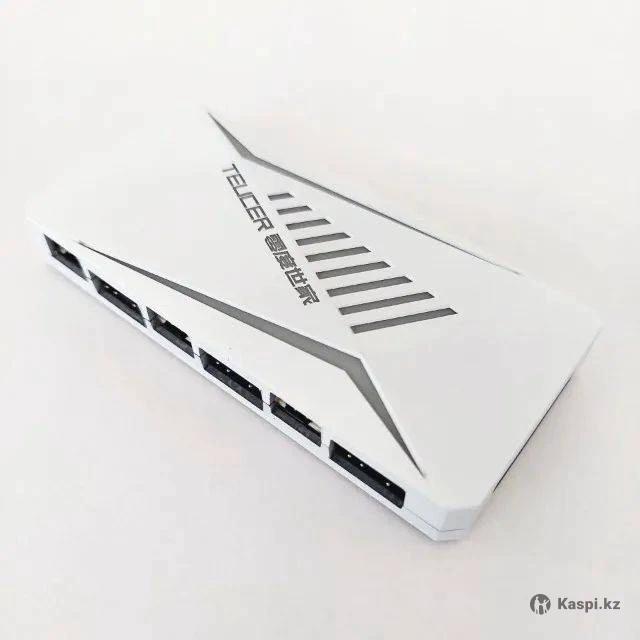 Argb контроллер teucer lp-6p. 6 разъемом для 3pin 5v argb, и 6 разъемов для 4pin 12v pwm. Питается от 12v sata. Управляется от 3pin argb на материнской плате, а управление скоростью вентиляторов от 4pin sys_fan. В задней части имеет магнитную пластину. Новый в упаковке, тестировал на работоспособность.